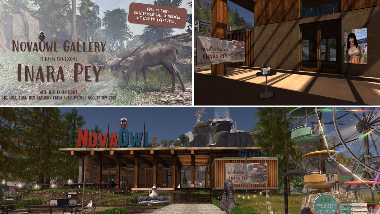 It marks a new stage in the evolution of my work on SL. The fractals, although still present under a new aspect, continue to progressively give way to the build. The latter, invaded by lights and reflections in the spirit of “Borderless” (read my post about this installation here / this installation is is available for an visit here), revives the highlighted drawing of the “Anthropic Principle” (an installation I missed, you can read about it on Inara’s blog here), of “Skyscrapers” (read my post about this installation here) and of “Exoplanet” (read my posts about this installation here and here). It is directly in line with the Neon Art theme, using the popular pink and blue colour code and some very classic patterns.