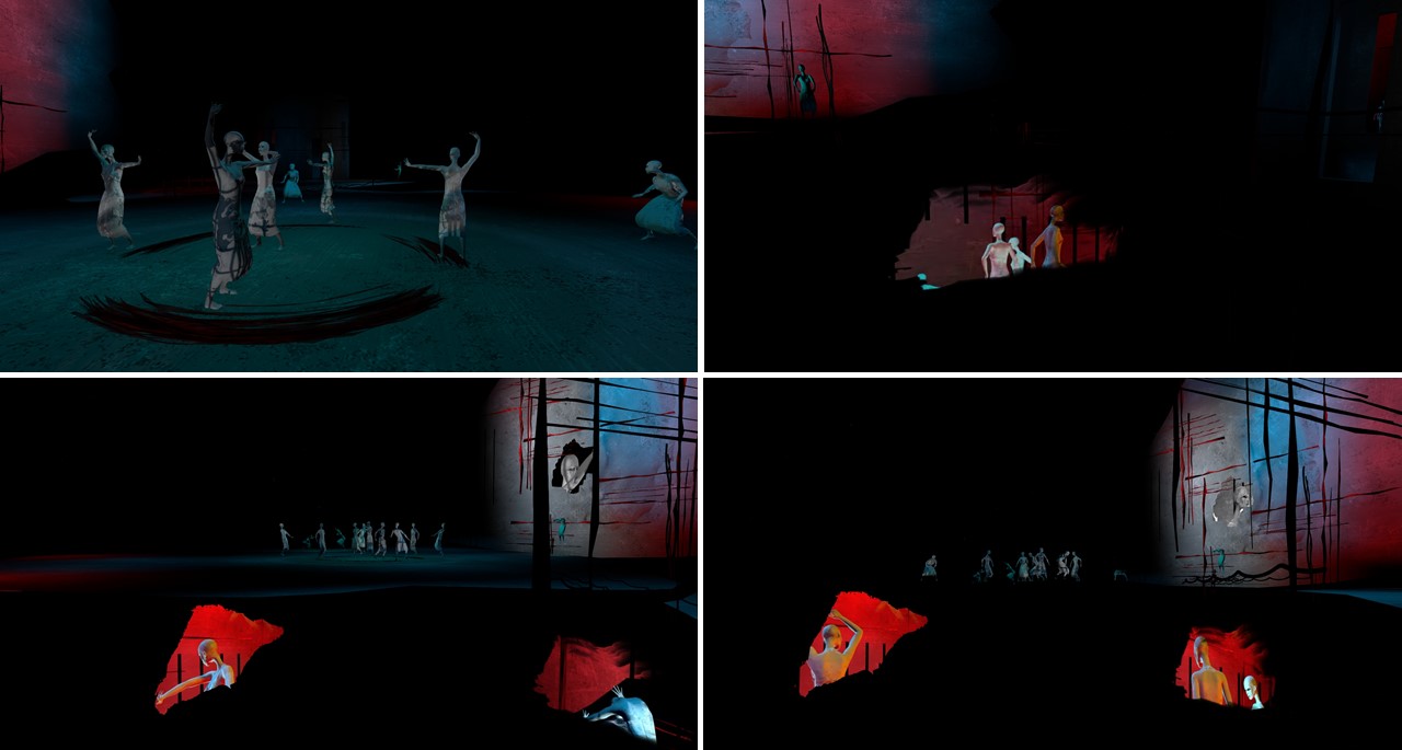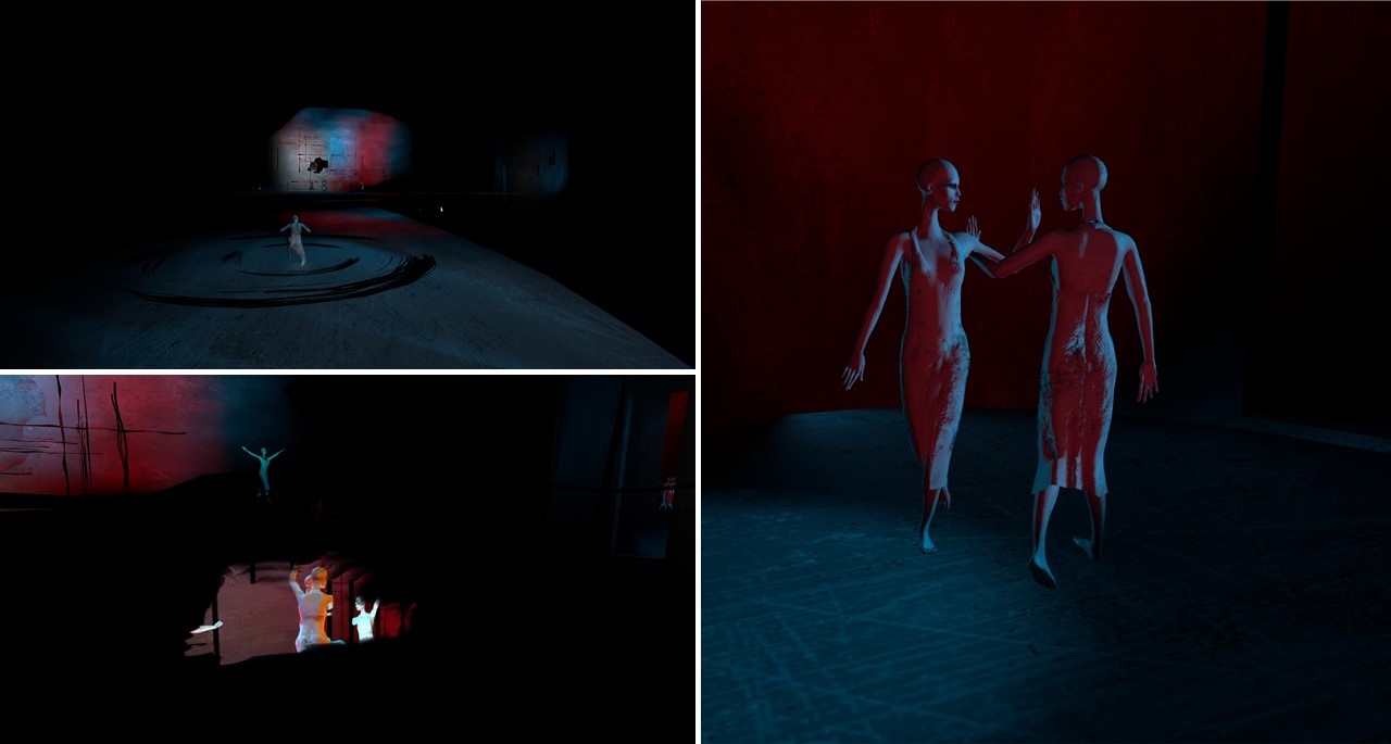 Getting on the 3rd level wasn’t that easy as I found no stairs. I tried walking through gates and all of a sudden got to the 3rd level. This level was obviously used for the opening event. Again you find different objects with the woman either dancing of being kept like a prisoner. Once free they dance, seek nearness to each other and follow a lead. They break out of their own prisons and limitations.