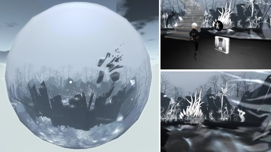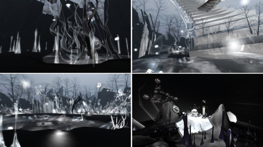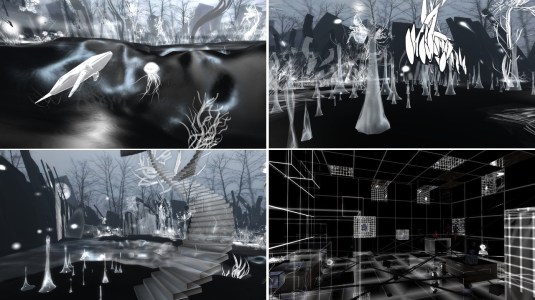 On Wednesday, December 11th, La Maison d’Aneli opened a new exhibtion that will be stay until January 11th. It features a joined installation, a witful and selfcritical journey by Yoon, Iono Allen, Theda Tammas and JadeYu Fhang about our Ego within Second Life “Lalawood – This could be Paradise”, a 3D installation by Tomm Pye, an exhibition of more classic sculptures and art by Willem Koba in the seperate room “La Serre” and paintings and pictures by Milly Sharpel, Tigerfish Rain, Bamboo Barnes and Vroum Short, who owns VeGaTal PLaNeT, the sim hosting La Maison d’Aneli.