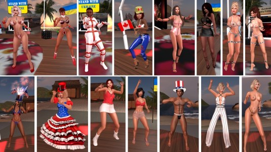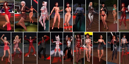 July 1st – Friday night party: Diomita, slave Holly, Flo, Baroness Capelo, sakuramatsumoto, Claven Albatros, Zillzie, Laura (laura00175) (upper row), Firefly Skydancer, Starbright Wingtips, Della Randt, Sara (SaraRandall), Jayson Dakota, Virgo Babii, Virgo Babii