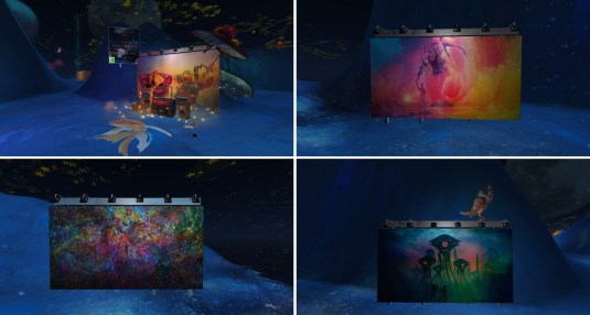 It’s been a while that I visited a gallery or art installation – I wasn’t in the right mood for it. Anyway on Monday, April 3rd, I accepted the invitation, that I got from Owl (Owl Dragonash) and visited an exhibition at Cloud Galleries with pictures of 2nis (2nis Sands). The official opening is today, Tuesday, April 4th at 11 AM (at 10 PM Central Europe Time) with music from Ilyra Chardin.