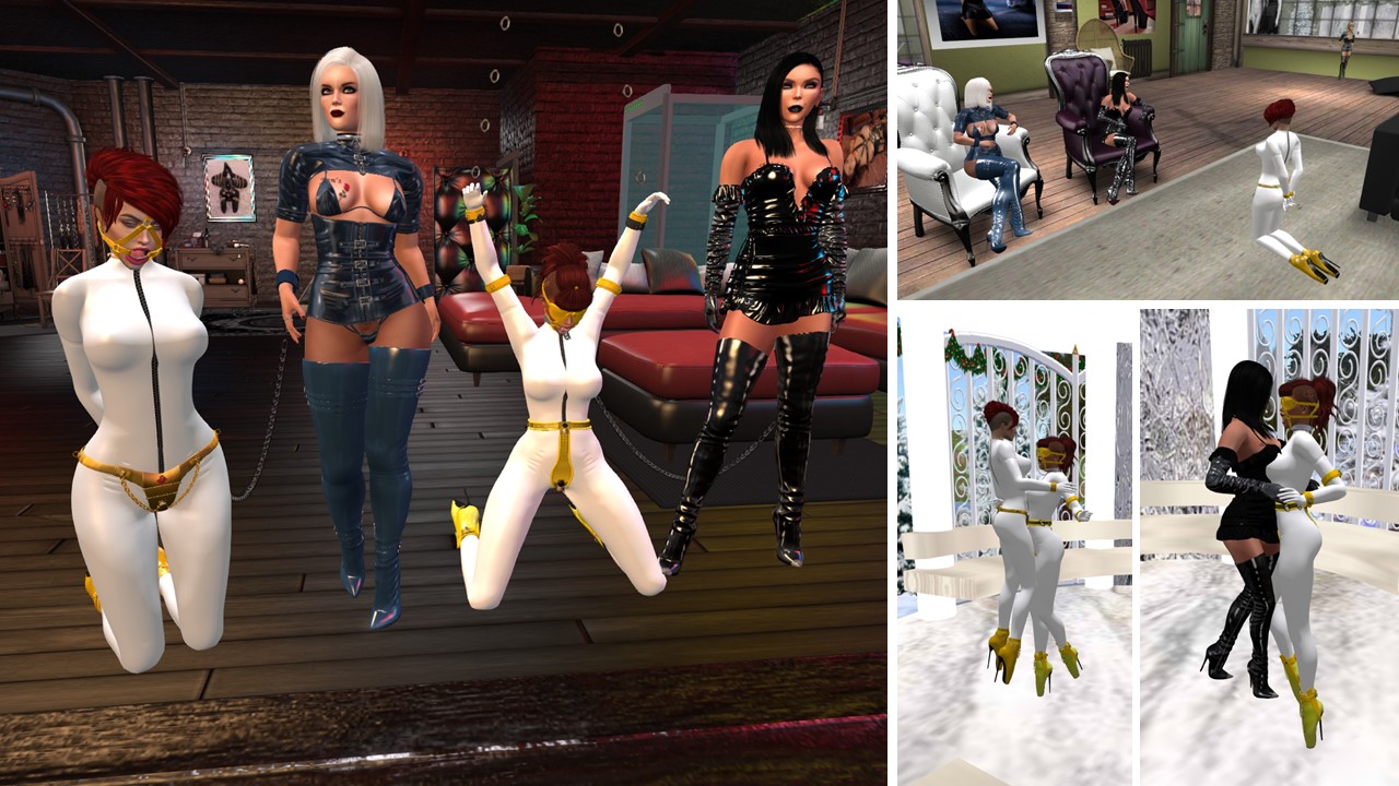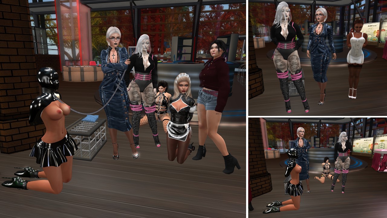 Mistress and Goddess Katie talked with each other and after some time at club Domme a Domme, Mistress asked me to go to our secret hideaway and to teleport Goddess and her. I did as ordered. The two dommes came up with rules for me, one was that I had to stay naked at all times when in the secret hideaway. Goddess snapped her finger and I stripped. I had to crawl and worship Goddess feet while the two talked and kissed. Both made it crystal clear that I have no say in any matter.