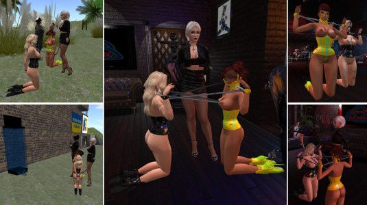 When it was time for dinner I took 2323 home and tied and leashed her at the sun terrace. I stayed online while I prepared dinner. After I had returned and finished my meal I took 2323 to Lochme first for a bit, then back to club Domme a Domme. slave Holly joined us there. I had a relaxed night with some chats and with teasing 2323 and Holly.