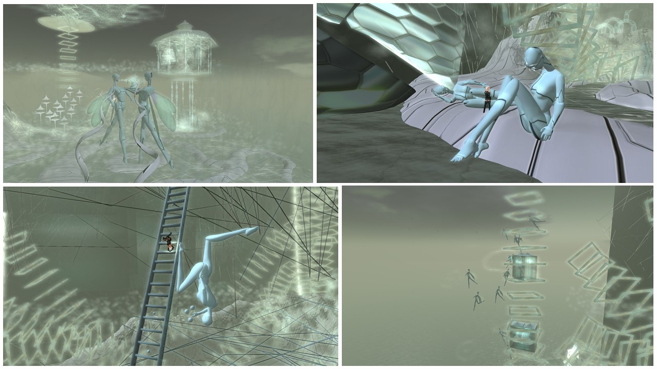 Quite dominant are the flying captured hearts as if someone has ripped them off the bodies. The flying hearts are from Rebeca Bashly. And there are quite some dead bodies hanging on balloons, surrounded by dead trees. There’s also a scene with playing kids. As if they don’t mind all the misery around, open to begin something new, being just curious.