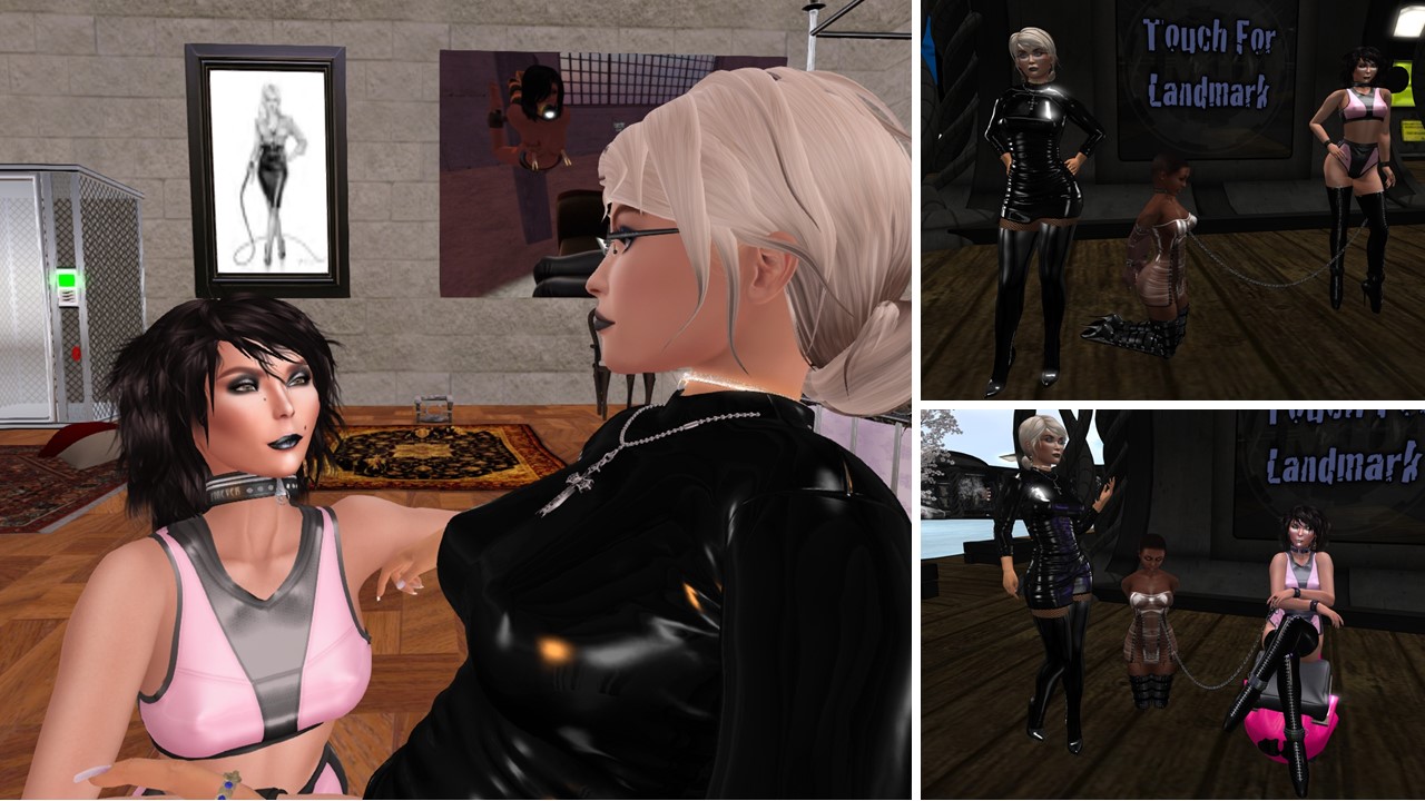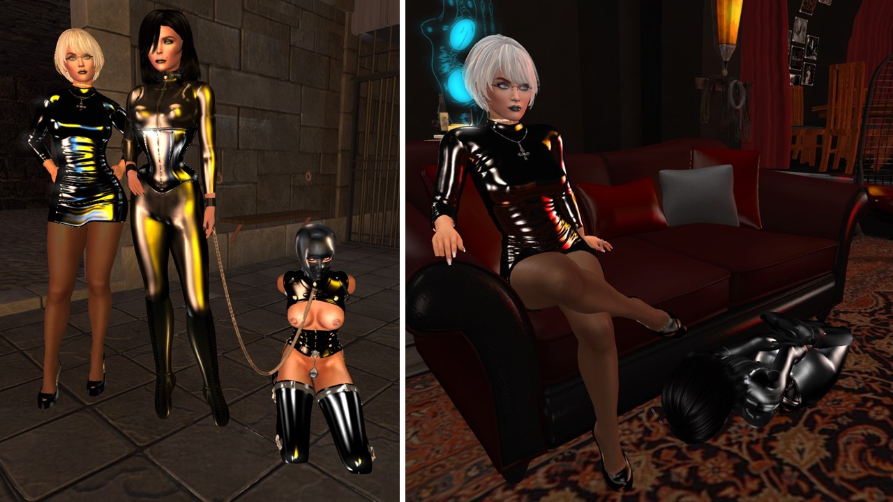 September 16th: Diomita with Jenny at the cross in our skybox / Diomita and Jenny with slave Gwendi at Mesmerize Dungeon