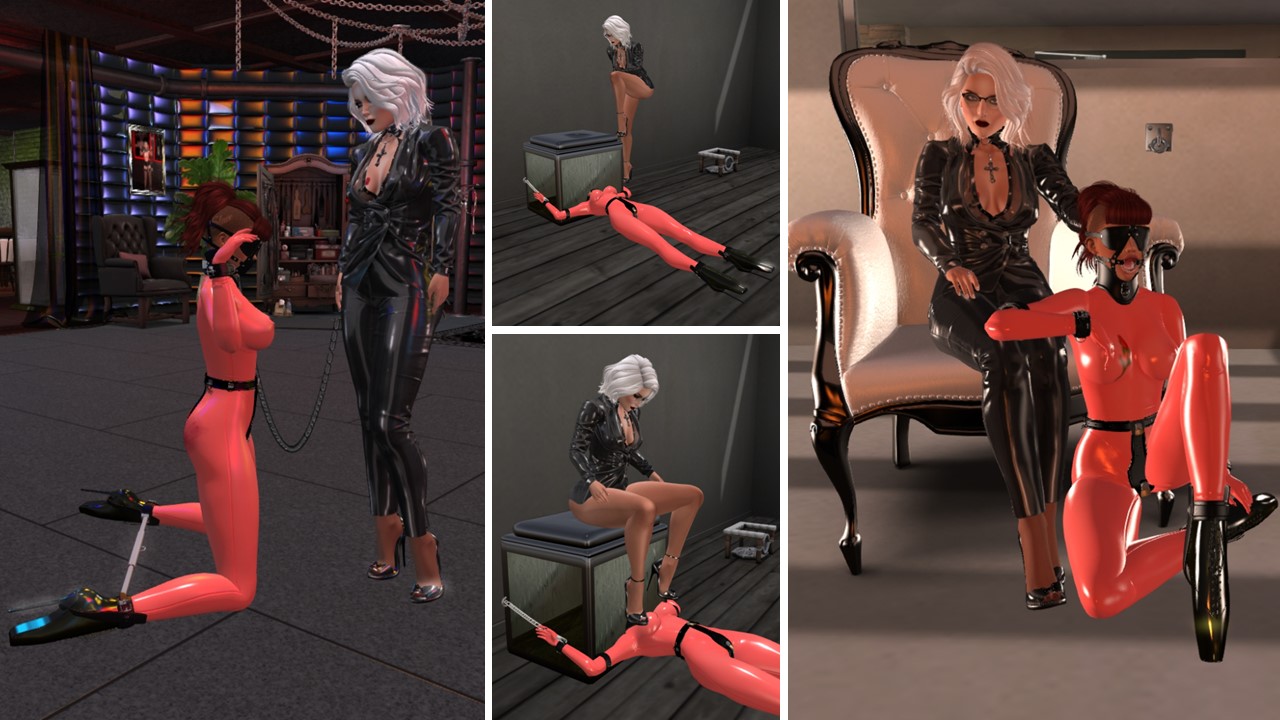 Mistress and I left slave Lily and went to Carnal Intentions for a while and later to Puerto Esclava. At Puerto Esclava Mistress took my leash and I had a short time kneeling at her feet.