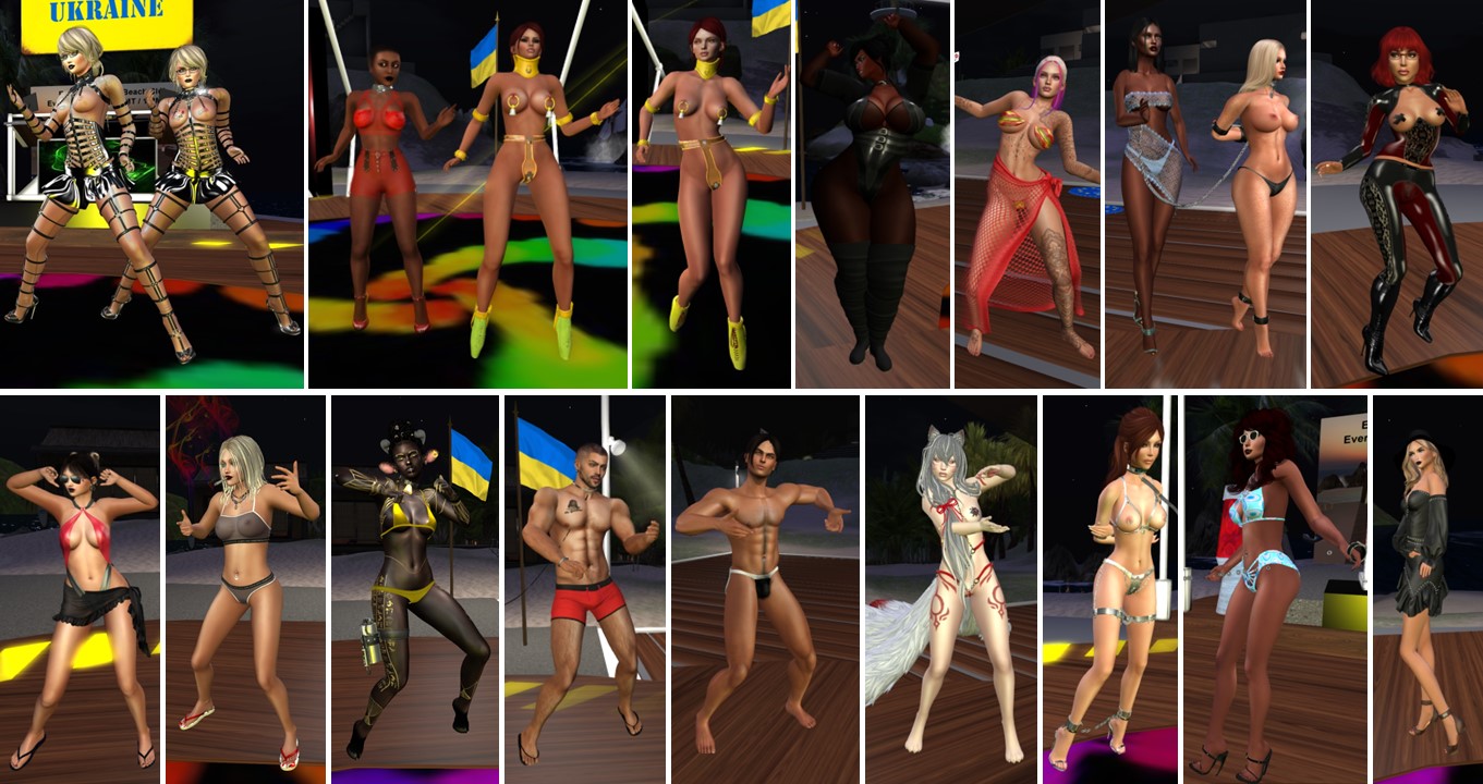 August 19th – Friday night party: slave Holly, Diomita, Angelique, slave Alessi, Ebony Massey, Sarah Fhang, Baroness Capelo, Claven Albatros, Betina Sands, Dely (Krysbia), Liz Swann (lizswann), Perla S. Topaz (Perseo Topaz) (upper row), Della Randt, Starbright Wingtips, Bastet Starchild, Filipa (Filip Huntsman), Kawaii Suki, Jayson Dakota, Adumadan Biziou, Haly Shinn, Virgo Babii, Virgo Babii (lower row)
