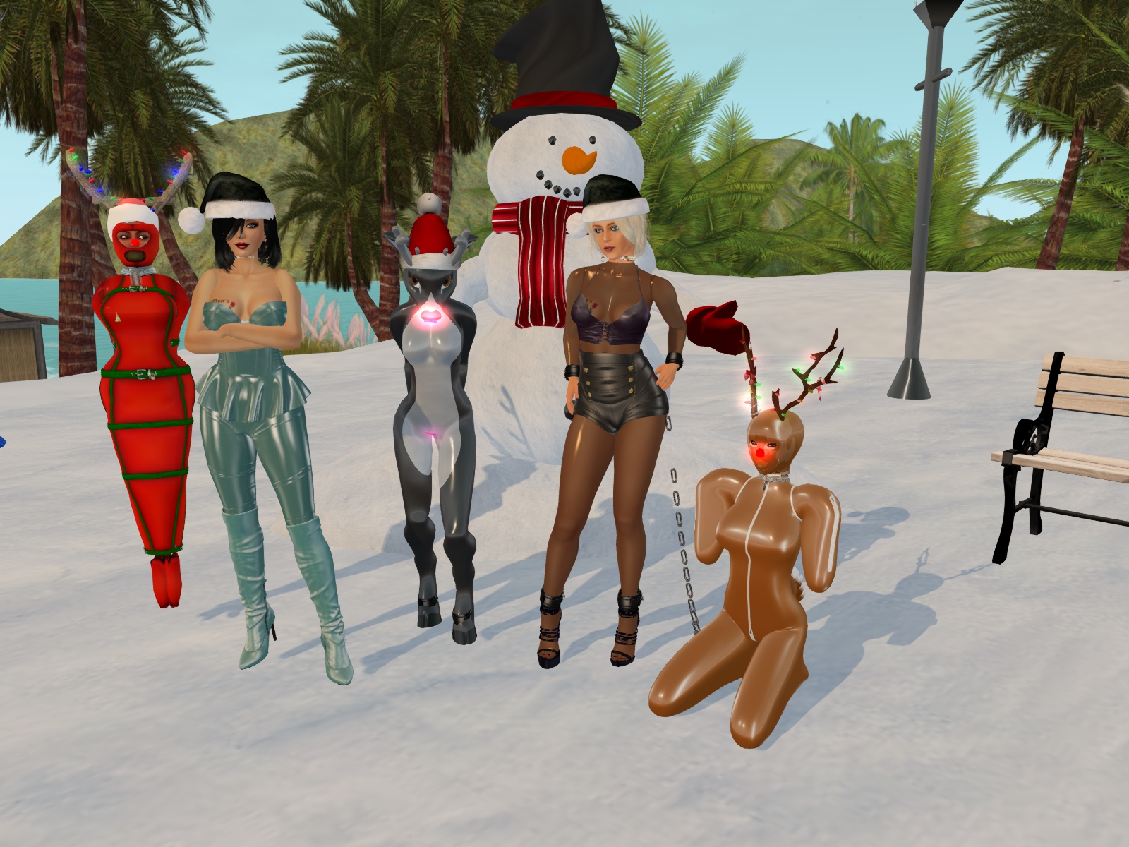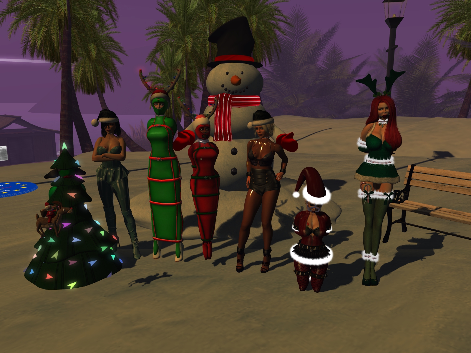 December 6th – slaves in their seasonal December outfits: Diomita, slavin C, Mistress Jenny, slave Flo and slave Adarra