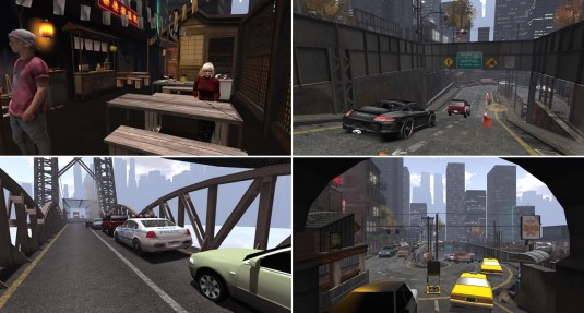 I began to explore and left the boat, I crossed the bridge and it was raining. My latex dress and the overknee booty was once the right outfit for simploring! Billie selected the light very smart and you can see the reflections on the puddle on the street. There are also some static figures on the streets to liven up the scenery.
