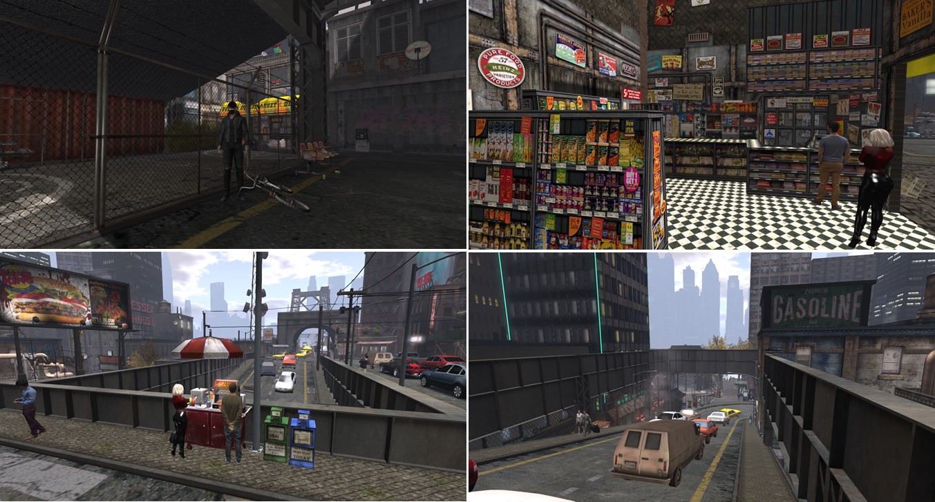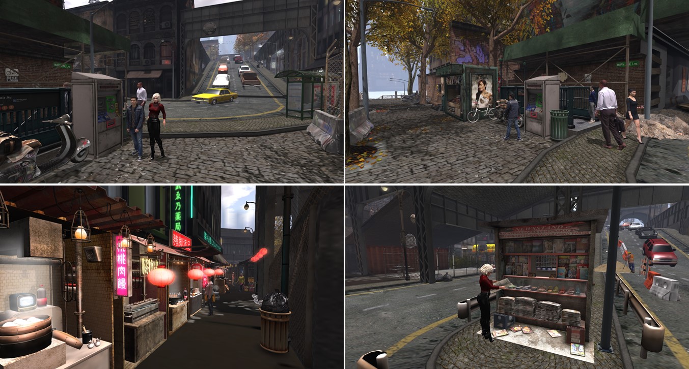 I began to explore and left the boat, I crossed the bridge and it was raining. My latex dress and the overknee booty was once the right outfit for simploring! Billie selected the light very smart and you can see the reflections on the puddle on the street. There are also some static figures on the streets to liven up the scenery.