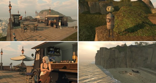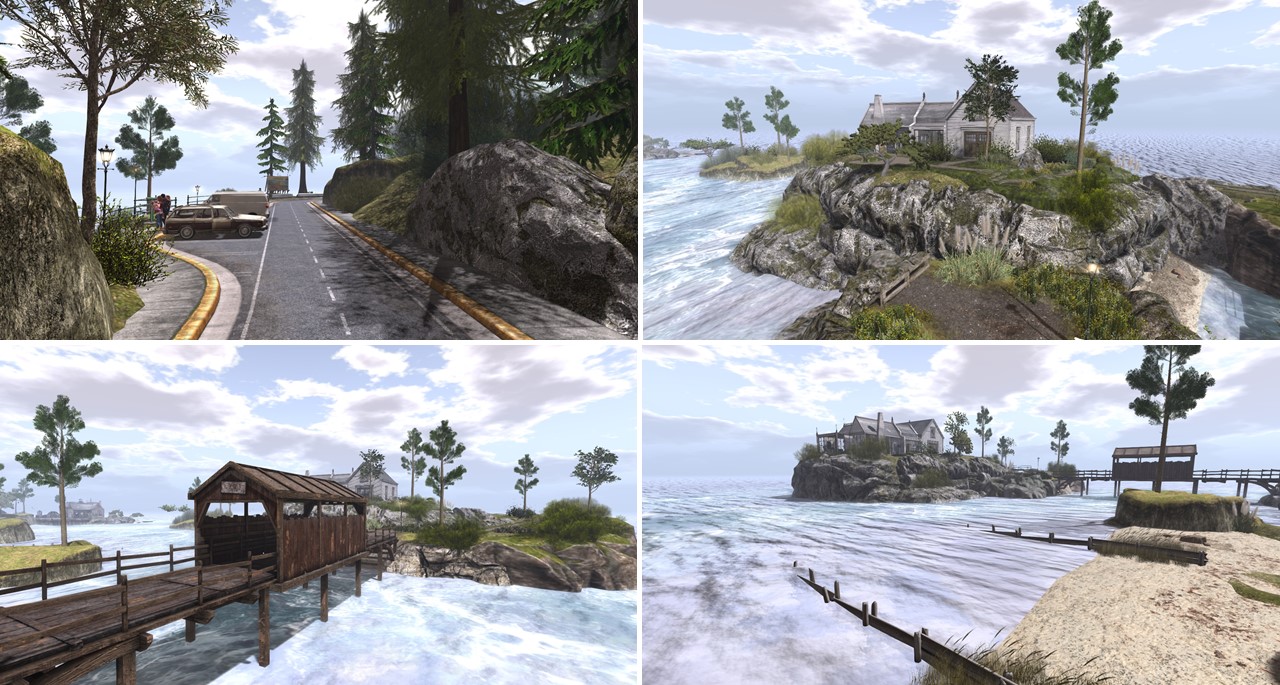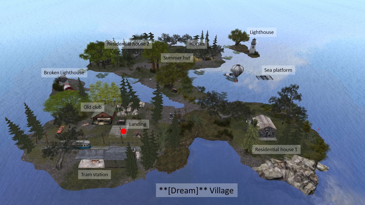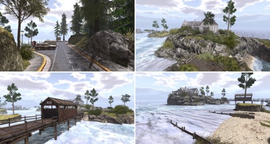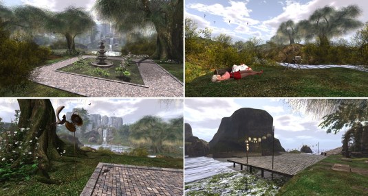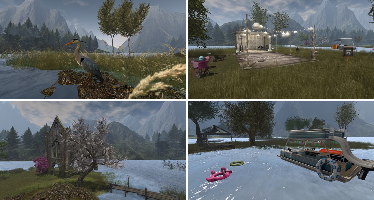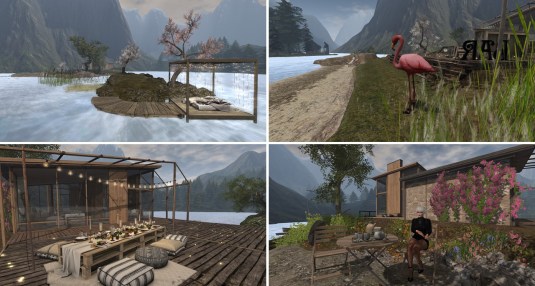 “Soul Deep” is embedded into a mountain sim surround. It consists of several small islands. In the center is a big pond. The landing is at the shore of this pond on the terrace of a café. From here you can walk on a wooden walkway around the pond.