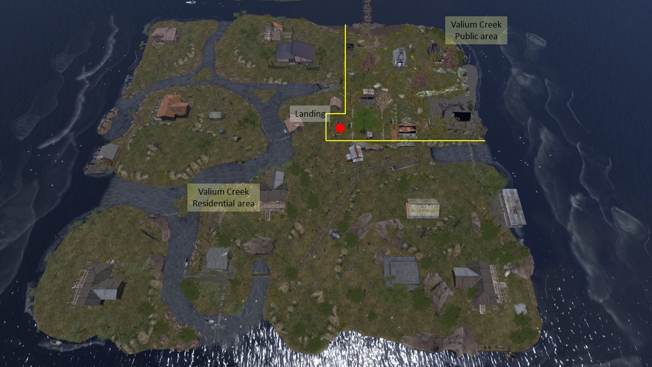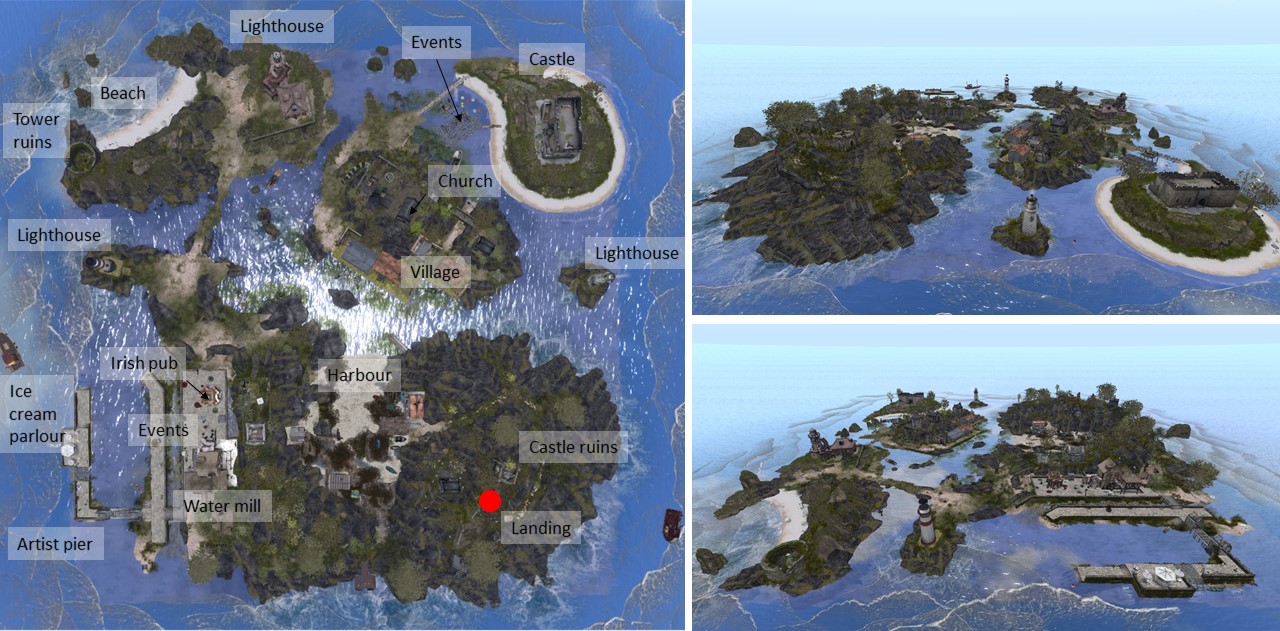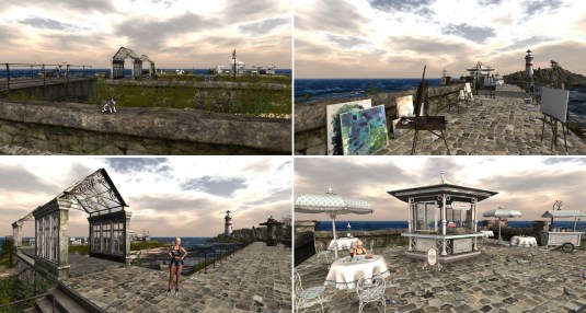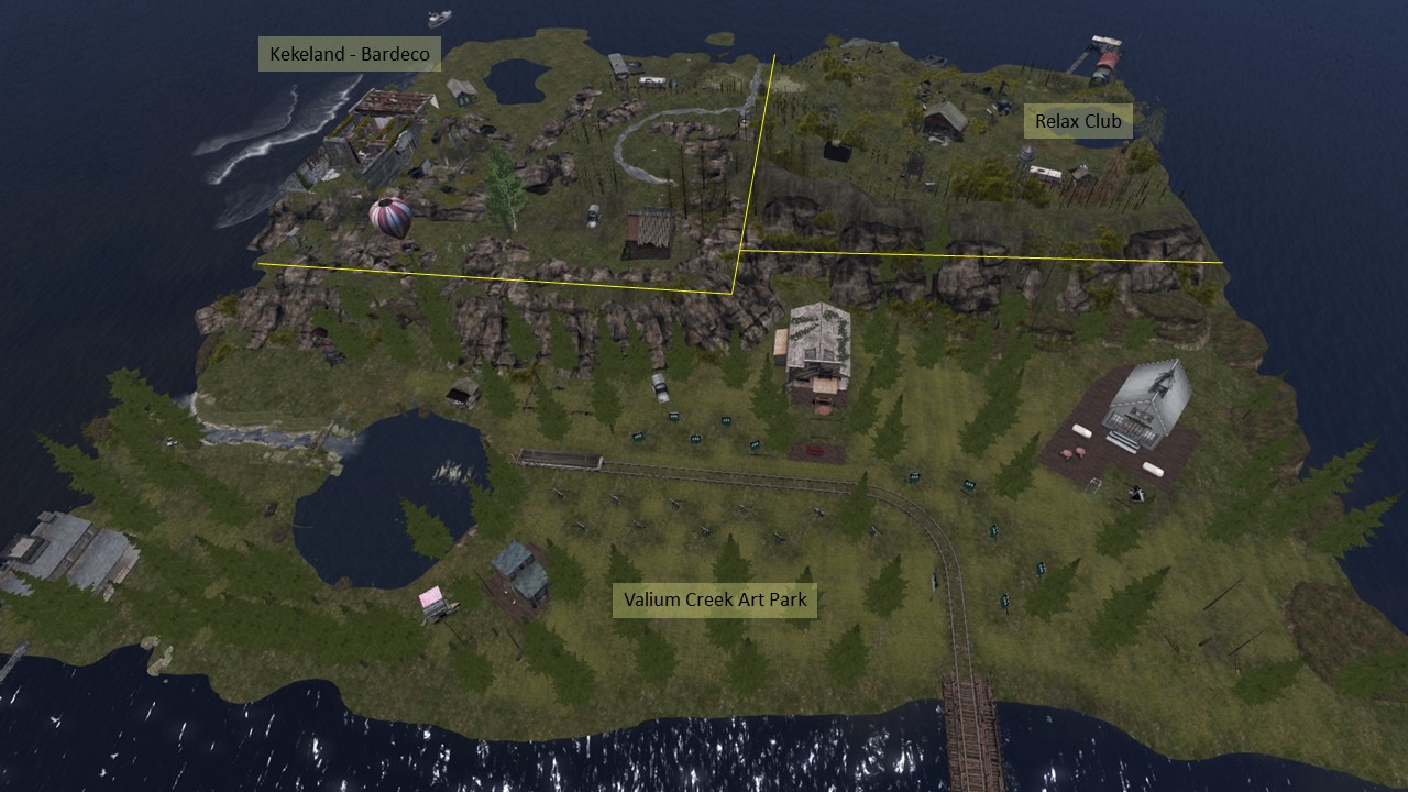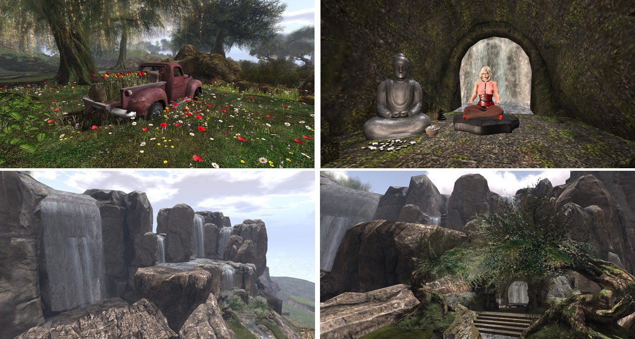 “Soul Deep” is embedded into a mountain sim surround. It consists of several small islands. In the center is a big pond. The landing is at the shore of this pond on the terrace of a café. From here you can walk on a wooden walkway around the pond.