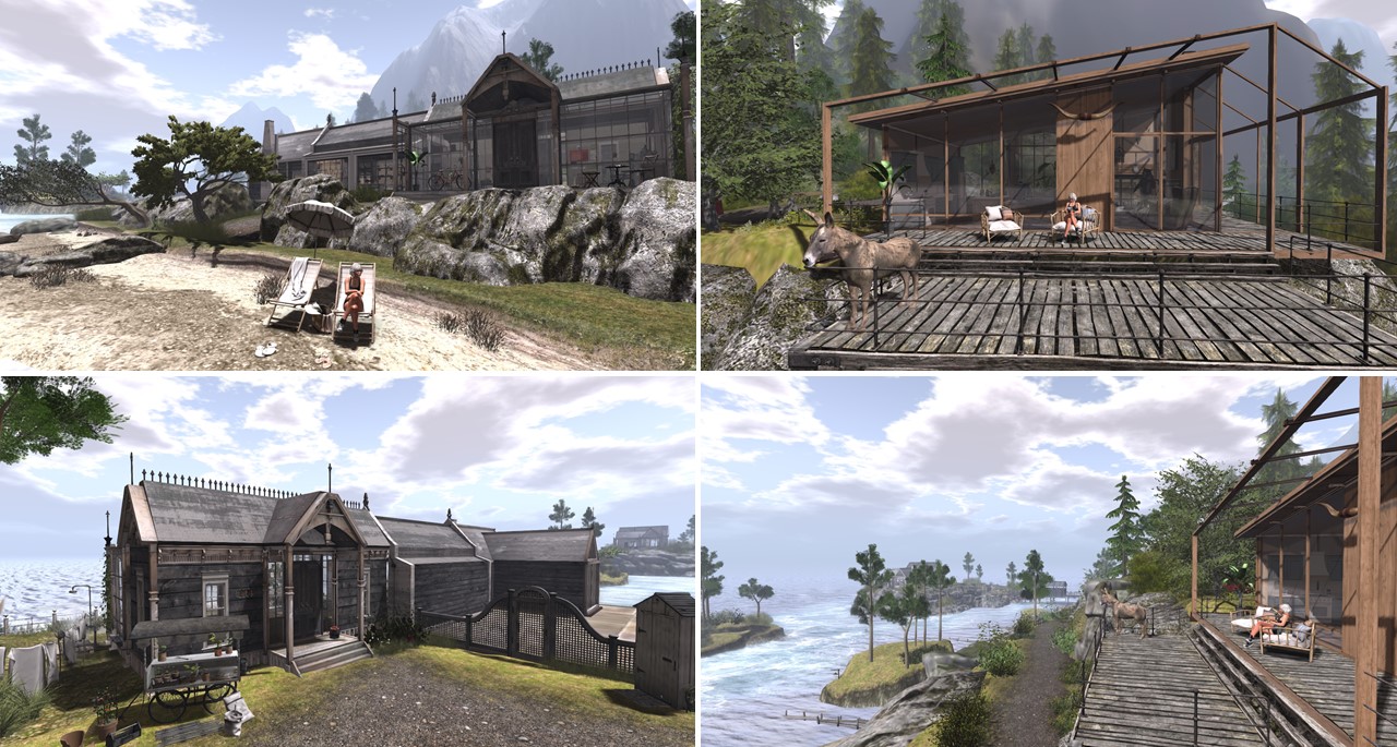 I went or better expressed I swam to the lodge next. Acutally in Second Life you can fly the little distance. The logde is a big residential house, fully furnished. On the large terrace everthing is prepared for a bigger event, maybe an anniversary, a birthday party or a wedding. There’s also a little bar. And no sutprise there are more places to sit and enjoy. A bit off the island with the ladge is another cosy place to retreat.