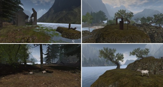 As mentioned before “Soul Deep” offers many different motifs for photographers. Not far from the landing point is a forest, with another ruin that could be a nice background for romantic pictures, and with a camping site. If you want some higher rocks or a background witu mountains, then there are some high rocks you can climb up to and there you even find a goat.