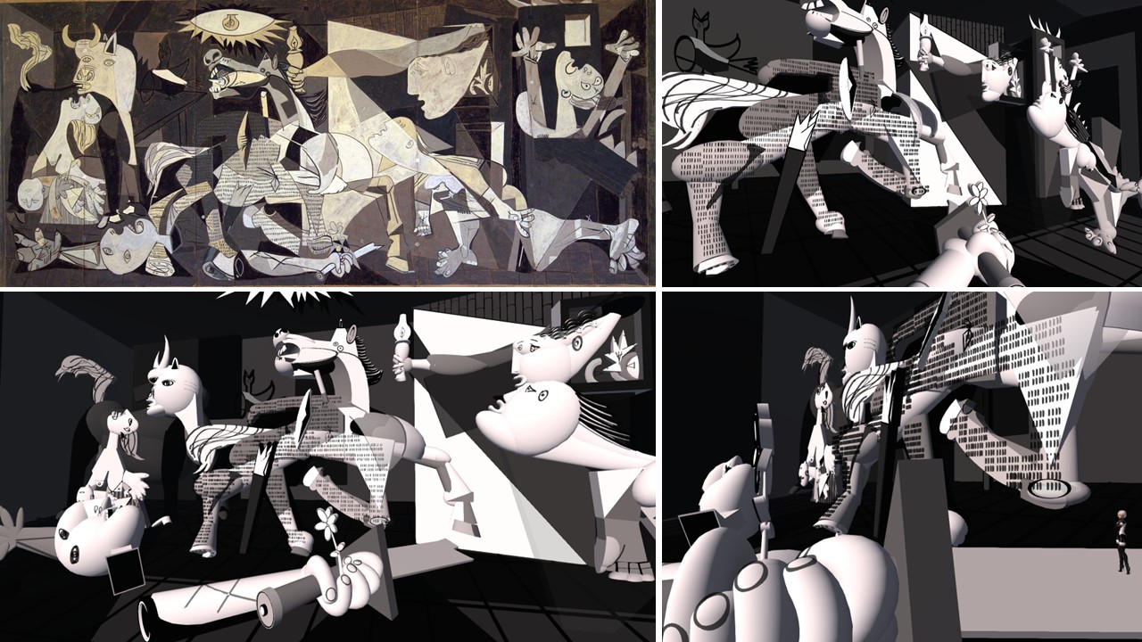 Impressions of “Guernica” by London Junkers (3) (upper left is Picasso’s picture, all others are London Junkers 3D model)