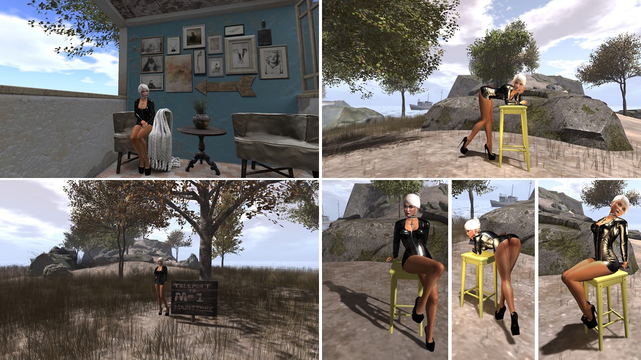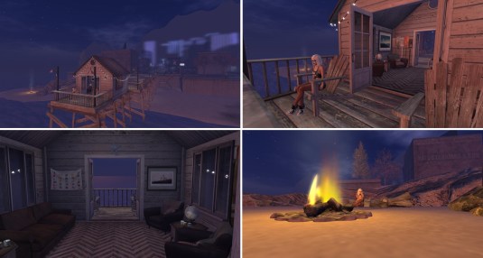 Grauland is an adult sim owned by JimGarand. Jim owns a shop for poses, the M-1 Art Poses. At the landing pier you find a teleport board to the M-1 Art Poses shop, that is located in another room of the headquarter building. I had a look at the store and stepped out of the building. If you walk along the wooden pier there you reach a seperate island with just 4 chairs and a campfire.