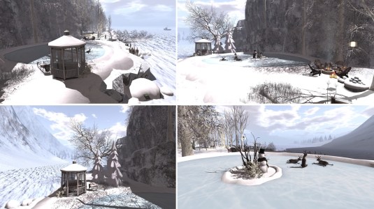I found many cosy and lovely sims where people buildt their own dreamworld, peaceful and picturesque. You don’t need many prims or a large place for it, Sweet Paradise of the Darks and Cake are examples for that. Most of these dreamworlds were homesteads: Maison de L’amitié, Wild Edge, Season of Joy, Hinansho, Glenrosa, Winter Moon, Adele, Baileys Norge, The Silent Mind, Chochou … just to name a few. In these sims I spent relaxing hours and enjoyed the views and the peace.