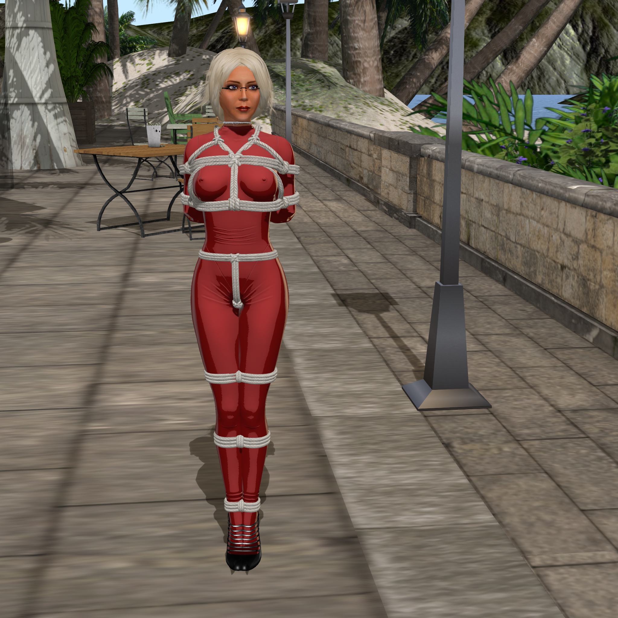 These ropes are perfect for those who like to roleplay with ropes. The focus of them is to look good and perfect, being real eye candy, they are not overloaded with scripts. Any restrictions you might want you’ll have to make with other gear like a collar. But for the play with ropes they are just the right toy! The menu’s are easy to understand, you don’t really need to read a long manual. Even the notecards that explain everything are short and read in a few minutes. I tried some self bondage first, so you get an impression …. and this blog entry is about “Enjoying bondage”, isn’t it?