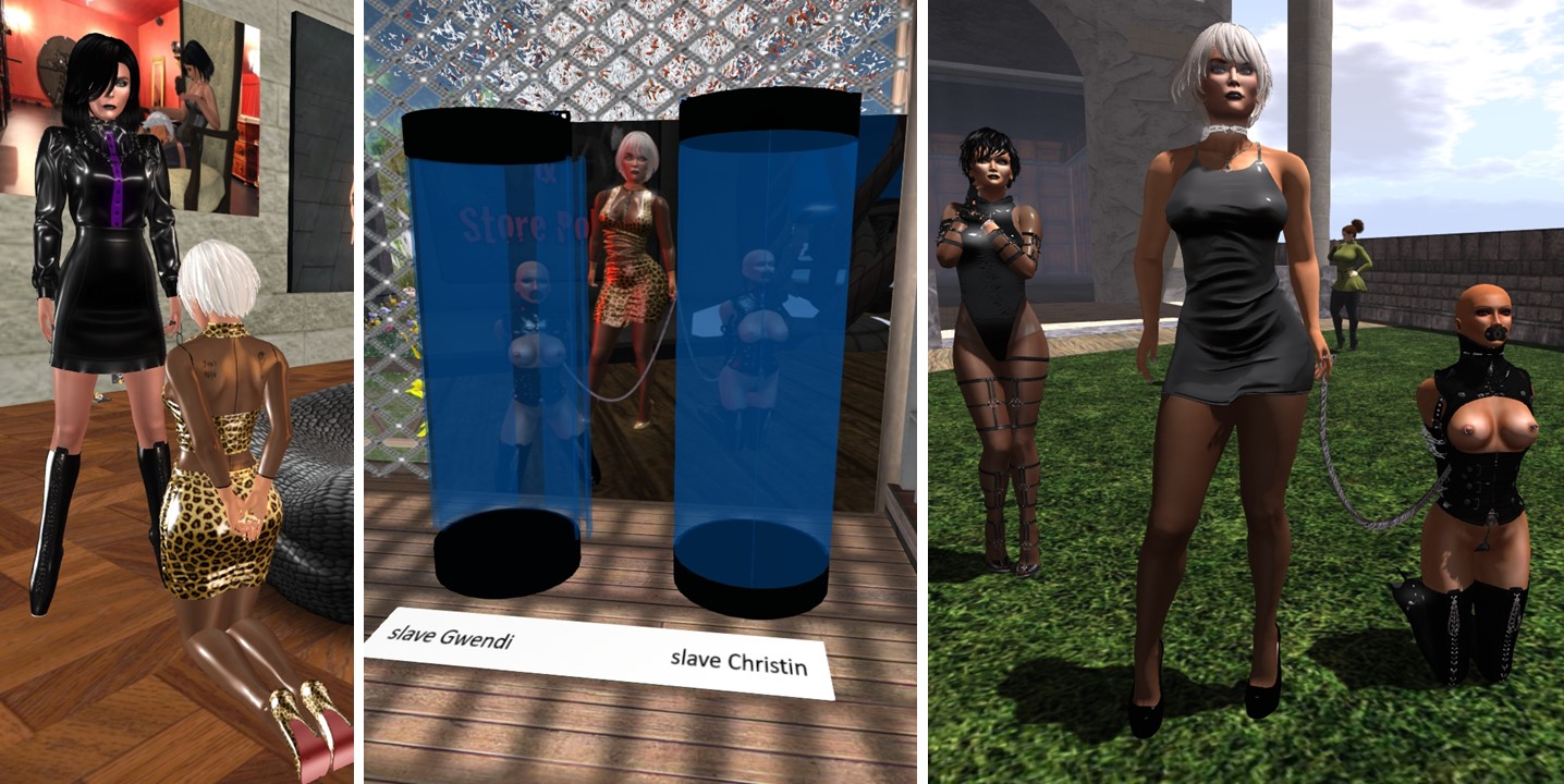 September 28th: Diomita with slave Flo and slave Gwendi at home in front ot “Flo’s Heaven” / Diomita with slave Gwendi at Mesermize Dungeon and at home