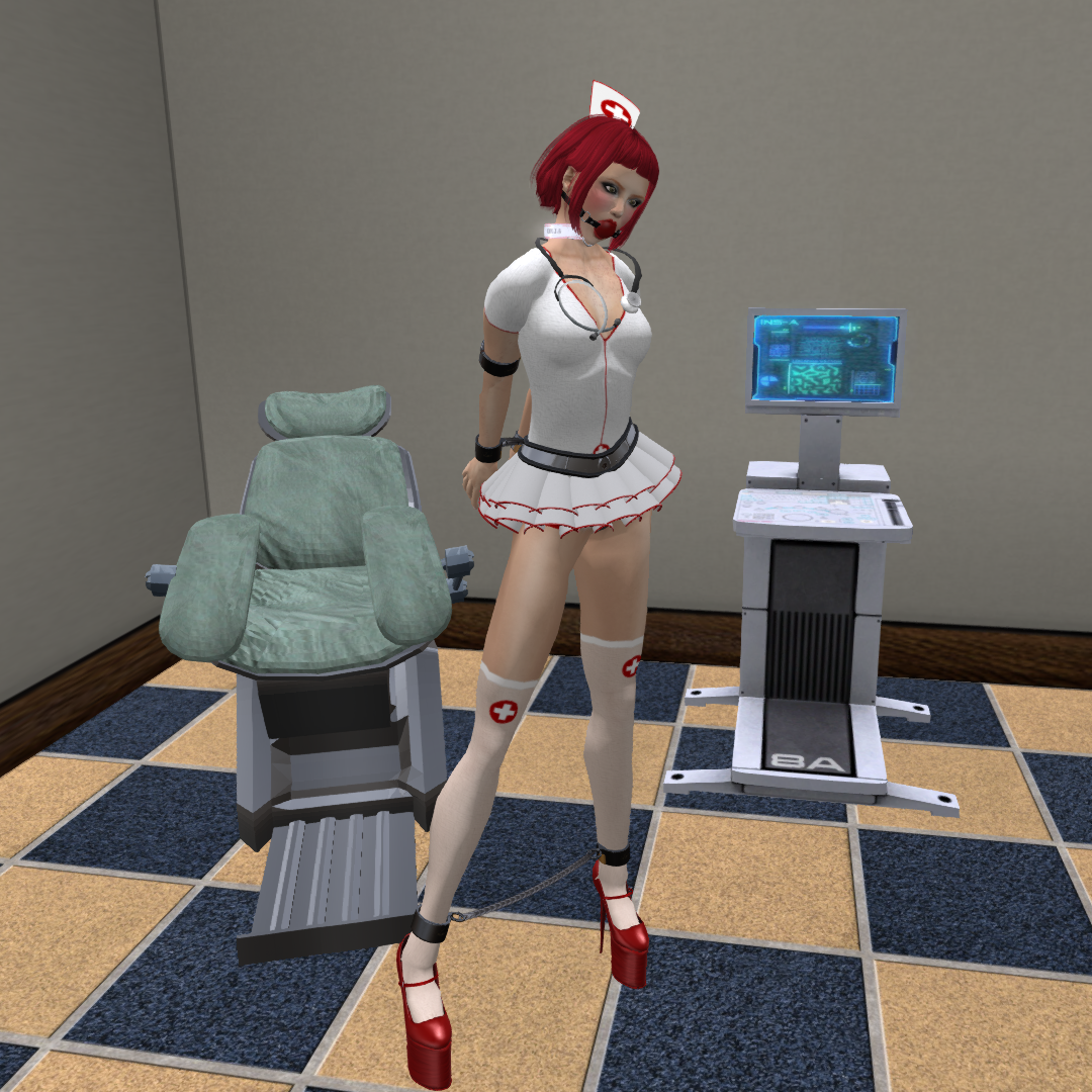 Bondage nurse Nina: “Should either Mistress ever fall ill (hopefully not!), bondage-nurse Nina will be on duty!” (picture taken by slave Nina)