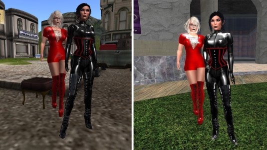 Monday, December 27th, I met Mistress Jenny several times. First shortly in the morning, when we visited Puerto Esclava together for a few minutes before Mistress and I returned into RL. And then in the afternoon we spent time at Carnal Intentions and at Heavy Bondage Club. We talked a lot about the next year and changes to come also between us as Mistress is taking more control over me. It is an exciting thought, yet also frightening me. But I hardly can change anything. With all of our chat I forgot to take pictures, so I have just one from the morning showing us at Puerto Esclava.