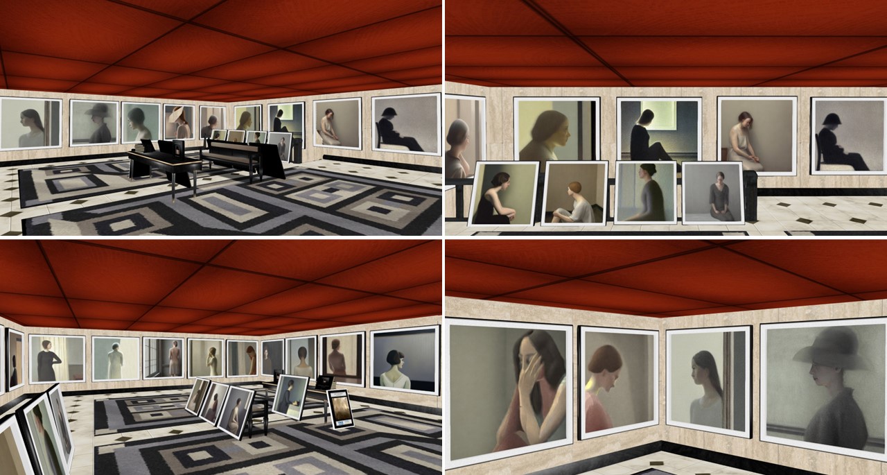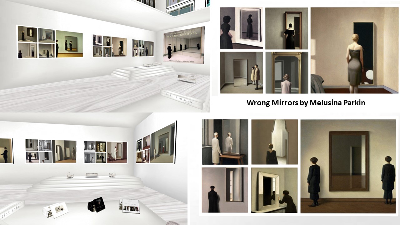 I am a fan of Melusina Parkin’s art and have seen quite some of her exhibitions. Melusina Parkin’s style is minimalistic. She usually takes her pictures in Second Life. The minimalism forces the spectator to focus on details, that might stay unseen when too much distracts the view. Lately she tried out different things, in particular she explored the possibilites of creating art based on AI generated pictures.