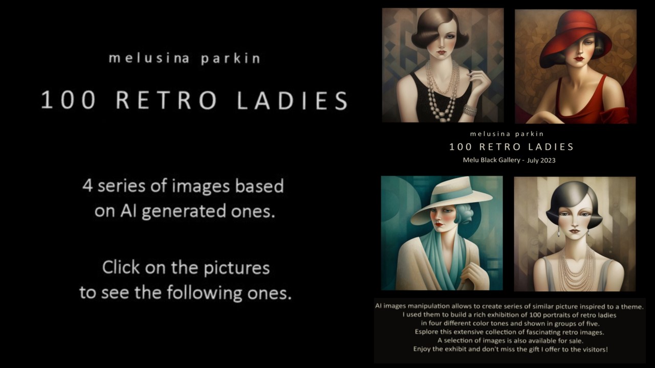 The power of AI images allowed me to show many ways to be reflected in fragments. The retro ladies depicted in these images wear different dresses and different hair, they have different expressions: they represent the many ways you can approach and unusal and maybe unsettingly image of yourself.“