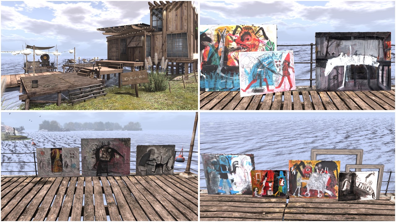 The largest building of Wision is in the center of the sim, a cinema, café and shop. Again it is an old storage house or plant building with a new usage. Inside you find a large event area with many seats for dinner, a bar, many posters of well know films like Hitchcock’s The Birds and Psycho or Federico Fellini’s La dolce vita.