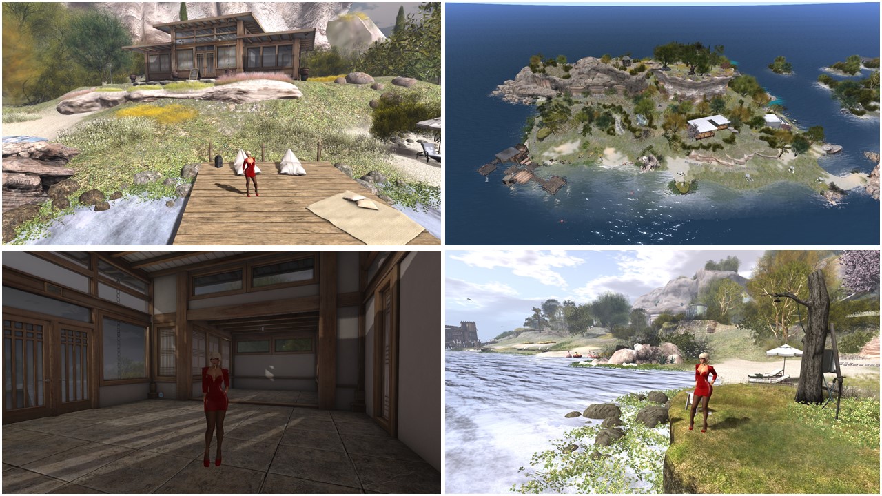 From there I went along the shore, through an iron gate and go to the only residential house on the sim. It was open and as I found no “private” sign, I dared to have a look inside. The house is named “Mexi’s Atelier” and is nicely furnished inside.