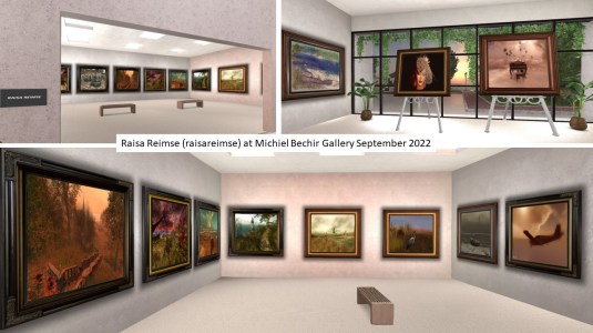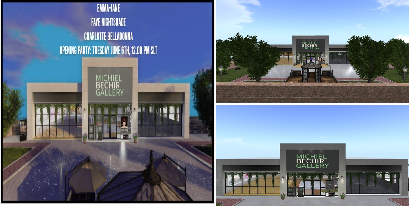 The Michiel Bechir Gallery has been remodeled. It now provides 4 exhibition rooms on two floors. In July you can see Michiel Bechir’s own artwork on the 1 floor left, Myra Wildmist’s art on the 1st floor right, Karma Weymann’s pictures on the 2nd floor left and Milena Carbone (mylena1992)’s exhibition “Resilience 2049” on the 2nd floor right.