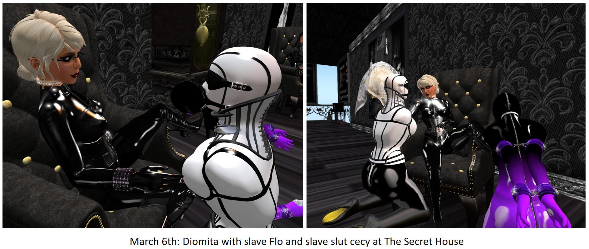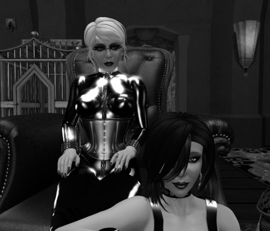 Sunday Oct 11th, we got visit from Nina (snina93.resident). After chatting a bit we discussed Mii’s Outfit and Nina said, she’s had something nicer in her point of view. Of course she showed it to us (vero, slave Flo, Mii and myself) and she added some elegance cuffs …. it’s a futuristic scifi bane suit. Reason enough for a few more “Enjoying Bondage” pictures.