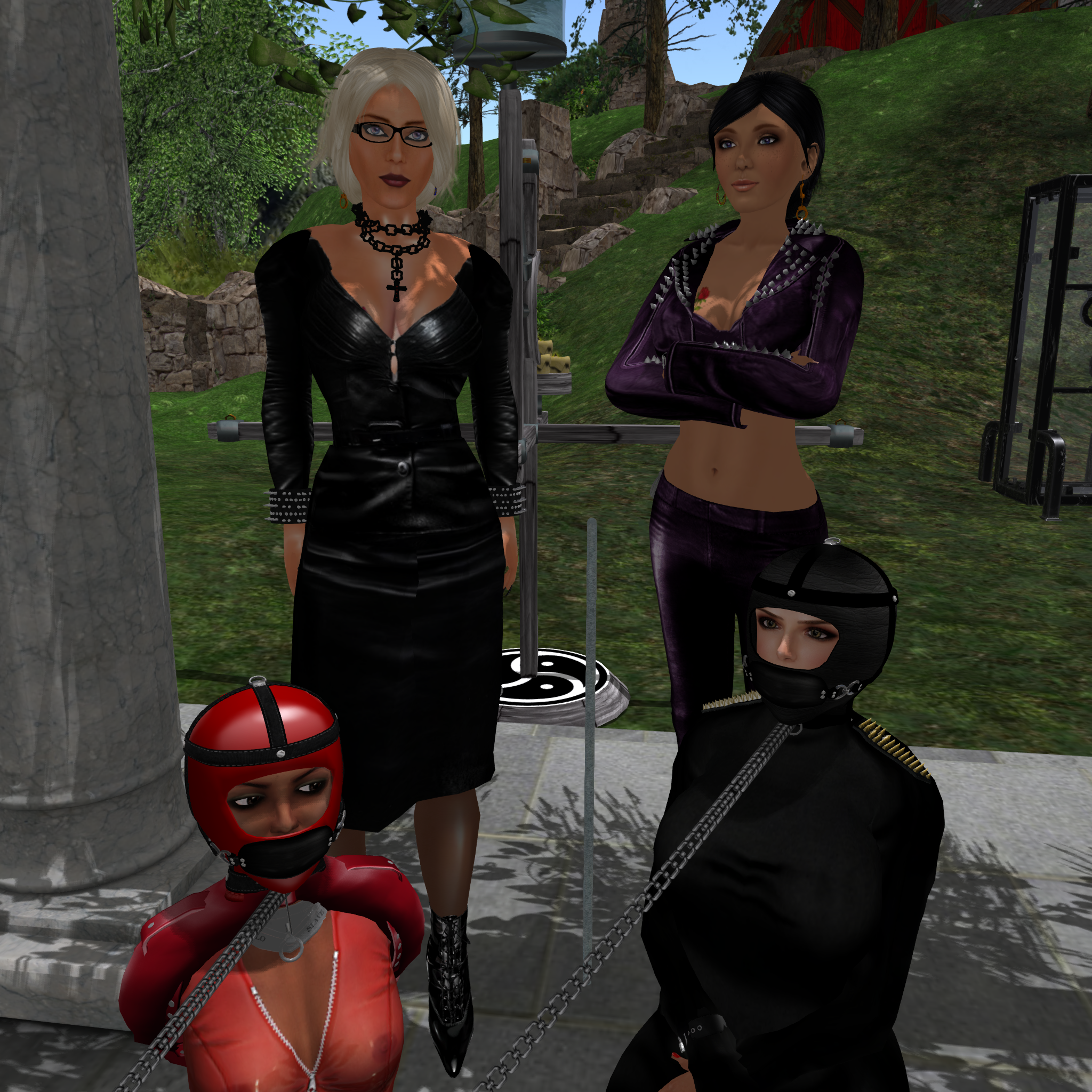 What do you go in for with such a varied crowd? Yes of course, you start a spontaneous bondage night! And so we did. Mii joined the already hooded and tied slave and rona and then we went to Tormenting Heights. Tormenting Heights is the homesim of my former sister Jill Ormstein and I admit that we visit there way to rarely. I remembered that there’s a nice patio to sit and enjoy. So, we went there to take a few pictures of our hooded Girls.
