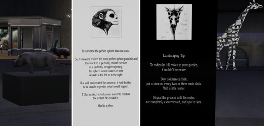 The notecard, that you can grab in her exhition room at michiel Bechir Gallery contains a long list of her exhibitions in-world so far as well as links to other publications of her. Myra writes for magazines and blogs, in partilar she is a staff member of Kultivate/Windlight Magazine. You find more of her art at her flickr page and on her own blog.