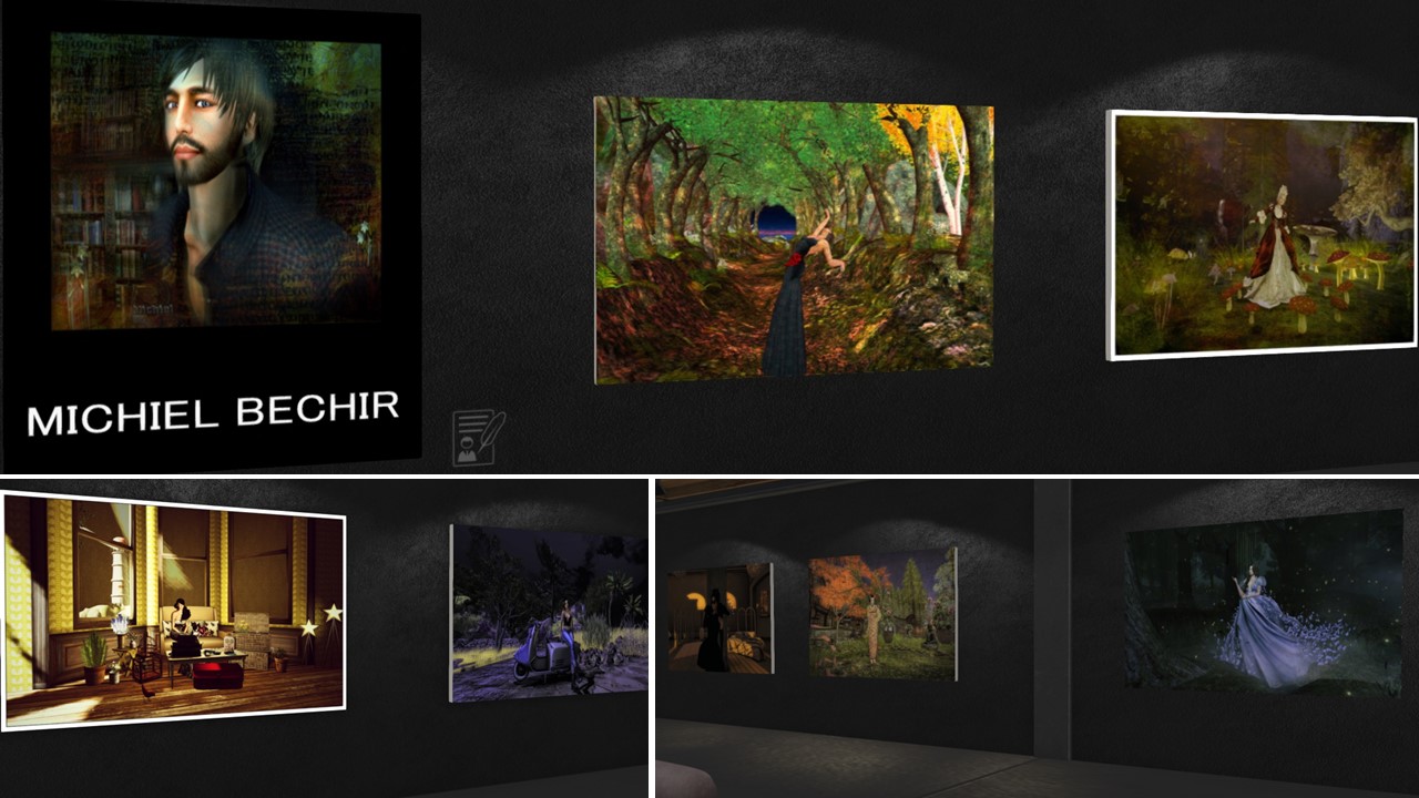 The Michiel Bechir Gallery has been remodeled. It now provides 4 exhibition rooms on two floors. In July you can see Michiel Bechir’s own artwork on the 1 floor left, Myra Wildmist’s art on the 1st floor right, Karma Weymann’s pictures on the 2nd floor left and Milena Carbone (mylena1992)’s exhibition “Resilience 2049” on the 2nd floor right.