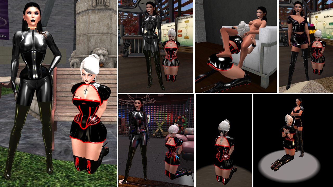 Thursday, July 15th, I went inworld in the late morning to visit a gallery. Mistress Jenny was in-world and we caught up with our news. Mistress has priority in Second Life and she decided to take her property (me) with her to club Domme a Domme. She leashed me and locked my cuffs on my back. Instinctively in knelt by her feet. Mistress was pleased as she had in mind to shorten my leash. She re-enacted all rules for me and ordered me to wear the tag “Jenny’s Ehesklavin”. My time as her side had ended. Luckily I didn’t have to wear the tag “Ehesklavin” as that would have meant wearing ballet boots or no shoes. Thank you, Mistress Jenny.