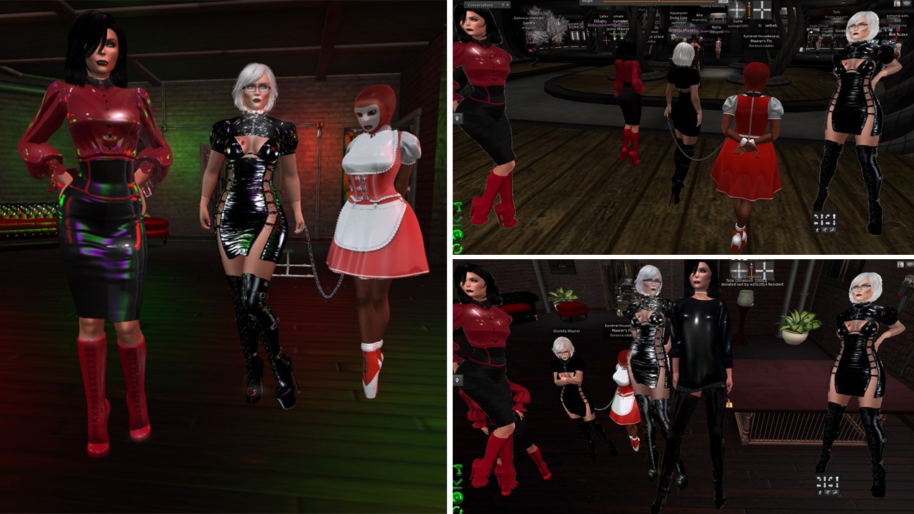 Mistress Jenny and I went to Carnal Intentions with Flo and slave Melissa. We had quite some IMs and group chats open and I hardly saw the club room due to all opened windows. We chatted amoung each other, we had a chat group chat with Argi, we talked with Ann, Faye came by later, Alessi (Alessi20) joined us, Ebony was in IM … and we participated a bit in main chat. We left the club at around midnight, when slave Melissa had to leave. Mistress and I went to club Domme a Domme – and met Ebony and Baroness Capelo (as Rudolf the red nose rendeer) there. A family and friends night!
