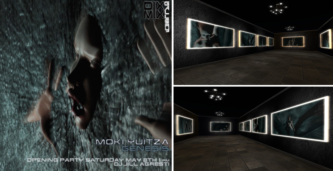 Maddy wrote: ““Reflections” is a journey of portraits that experiments with new ideas using A.I. technologies. The exhibit showcases photos created with Midjourney and Second Life Avatars, combined with the use of A.I. to create a melancholic and dark atmosphere that captures the essence of the subjects portrayed. The soft colors and blurs emphasize the intense emotions and intimacy of the portraits, inviting the viewer to immerse themselves in the images.”