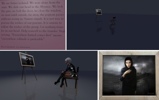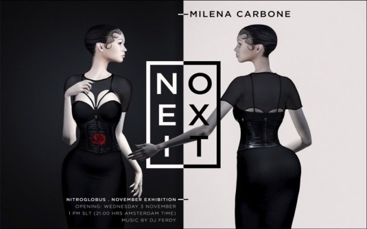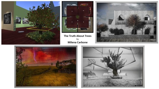 Milena was very active in Second Life, owning and curating three galleries. She has decided to focus on just her gallery and to make the most of it. Hence she gave up her galleries at Noir’Wen City and at Serena. If you want to see more of her and her art, also her performances, then visit her own gallery: the Carbone Gallery (and become a member of her group there). You can also find her on flickr here and you can read her texts here. And finally Milena also has an own website where she covers her work and activities.