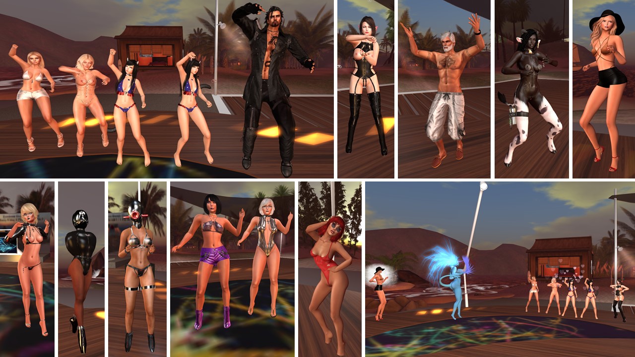 July 9th – Friday night party: Ebony Massey riding the bee, Mistress Jenny, Diomita, Angelique, Elenaslv serenity, Flo, Ebony Massey (upper row), Starbright Wingtips, Sara (SaraRandall), Firefly (MissMachine Dakota), Della Randt, Jayson Dakota, Claire (maddh4tt3r), Baroness Capelo, Virgo Babii (lower row)