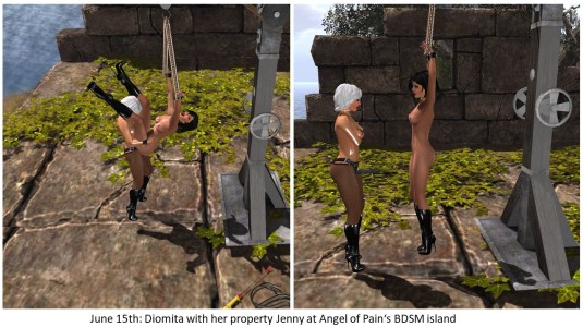 We spent Saturday night with Angelique and slave Flo and due to some RL interruptions we decided not to start anything kinky but to have a game of skipee (I won it). When slave Flo was off to bed, Mistress Jenny forced me to kneel in Angelique’s presence and let her decide where to go to. Angelique selected Puerto Esclava. Mistress gagged me and exposed me there. We rarely met friends at Puerto Esclava and we do not go often there. But that night we met Argi and Nano Siemens and it I had to kneel silent at Jenny’s feet. We spent about half an hour at PE, then Mistress Jenny took me to club DeLust to wind down and to talk. Being called “Ehesklavin” is a privilege and I’m thankful that Mistress Jenny changed the label of my collar back to “Ehesklavin” Saturday night at club DeLust.