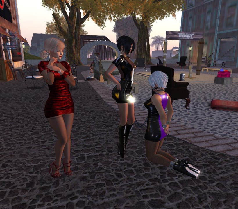 Saturday, April 28th, Mistress Jenny pushed me deep into subspace. We were at club Domme a Domme, where she had me kneeling at her side. A domme approached us, someone we know for not very long and she and Mistress Jenny talked about me mainly in a private conversation. Mistress Jenny forced me to adress the acquaintance with Miss and to kiss her feet. They discussed my limits and how they might abuse me. And I had to stay silent. It was quite humiliating not only because of the history I have with Mistress Jenny. Mistress Jenny had changed the prefix of my “Ehesklavin” to “slave” during my last red light and she used the collar commands in main chat that afternoon. She also changed the label of my collar to simply “slave” when she started this red light. And she adressed me simply with “slave” several times. This all added to the humiliation. I made no picture!