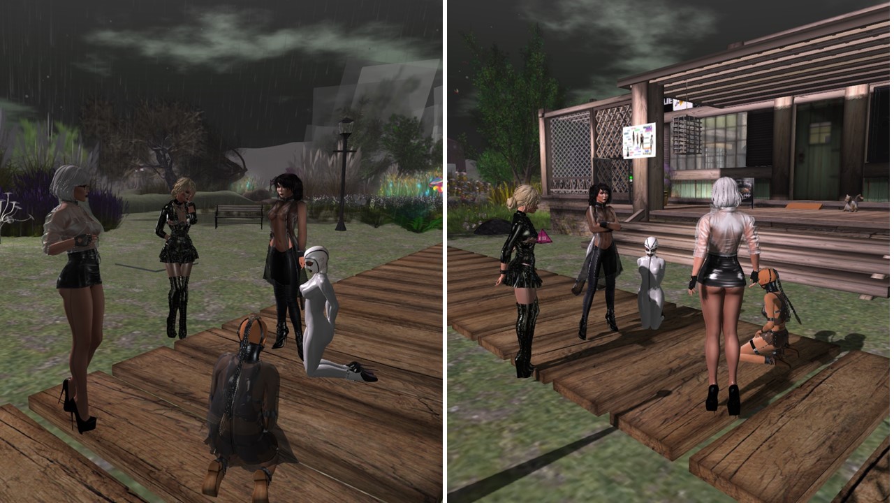 After the visit we went to club Domme a Domme together and chatted and looked at profiels and enjoyed togetherness for a while. While we were there Mistress Jenny exchanged my partnering collar with my normal collar, the next step leading up to my collaring anniversary. And we talked about the theme of our Friday night party. Mistress came up with “Every cloud has a silver lining so why not wear something Silver”, a theme fitting to our all RL situation at that time. We already changed into our outfits for the night, then went back home and tended to our RL.