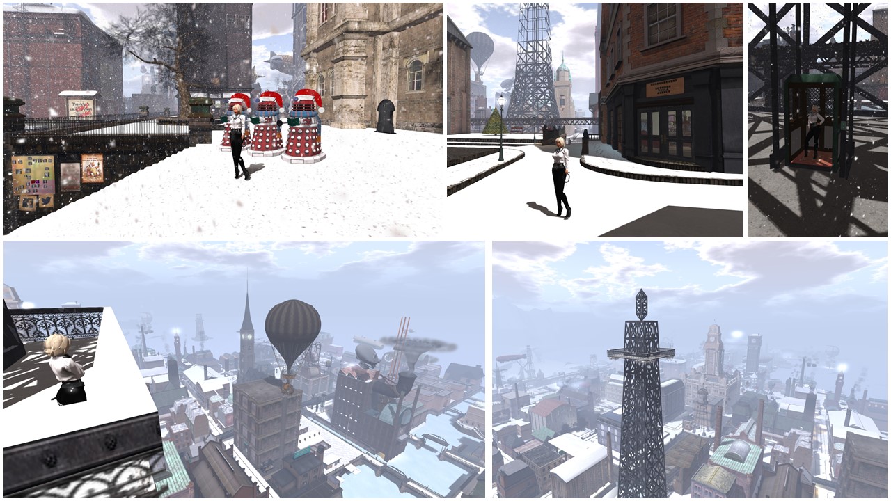 After I discovered Babbage last year (read here “Simploring 2017 (92) New Babbage“), I had a short chat with Vic Mornington (victor1st.mornington). He advised to see New Babbage in Winter… and so I did Sunday, January 7th. Eleven connected sims all set to Winter with heavy snowfalls, that’s quite impressive. On my first visit I just got a little small insight into this Steampunk world. And with my 2nd visit now, my insight is still very small. I landed in Port Babbage and walked from there to Babbage Square, New Babbage and Wheatstone Waterways. I enjoyed the views and the atmosphere, I took the elevator to the top of the high tower at New Babbage just for the view.