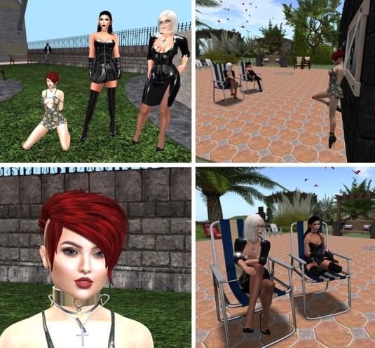 I went to Zana’s glass cage with Holly and we all gathered there: Zana, Maid Monique (MoniqueDefoe), slave Red (newlifeloading), Flo, slave Holly and I. We had quite some chit chat and fun. slave Holly left us to tend to her RL for a bit. I decided to have some fun, hence I told Zana that we will go to club Domme a Domme and that she had the assignment to make everyone kneel there for me while I relax.