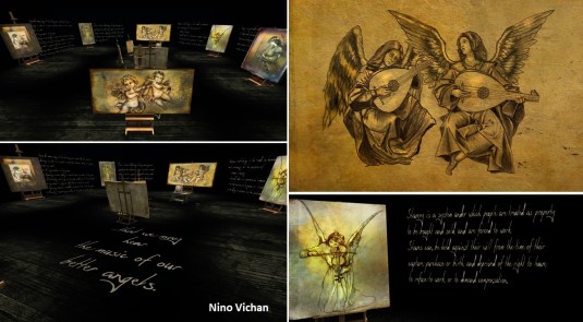 Nino Vichan is in Second Life since 2010. His skybox at La Maison d’Aneli is dedicated to “Better Angel”. Nino showcases pictures of angels, like you can find them in barock paintings along texts about the cruelity of humans: “When the human imagination sets itself on cruelty there are no limits to its designs.” (Charles M. Blow, A Rancher’s Romantic Revisionism, 2014)