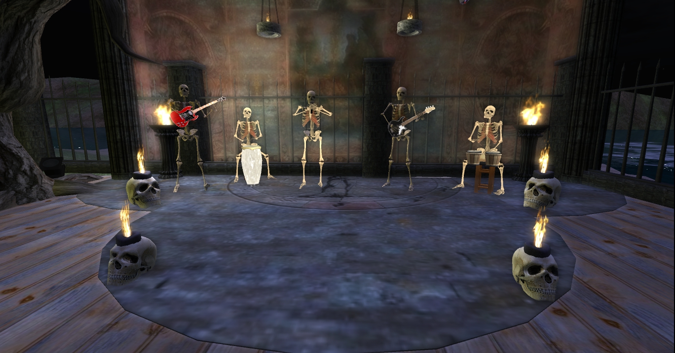 Inspired by visits to other sims we remodelled our part of Mount Everest. We added grass, flowers, trees and some pathways. We created a new lounge with a pergola. “It” (Queen.Takacs) had some technical problems and her world became literally pink. It almost destroyed her fun coming to SL. She could solve the problem luckily after a while and we built a new pit close to the new lounge for her and locked her down there. Now she has a lot of time to recover from this hard time and maybe she catches a view on our feet sometimes. We built a new dungeon and tore down the Strict Ballet Acedemy, we removed the guest house and added some more cells to “The Keep”. Furtheron we changed the Beach Disco. The weekly Friday night parties are a fix part of our SL (as well as of our RL of course). We do have a great time there and Virgo provides great music for us and she adjusts the program according to the theme. We first thought we have to built and create it newly from the scratch but then we found a great ready built outdoor disco and modified it so that it fits to us.