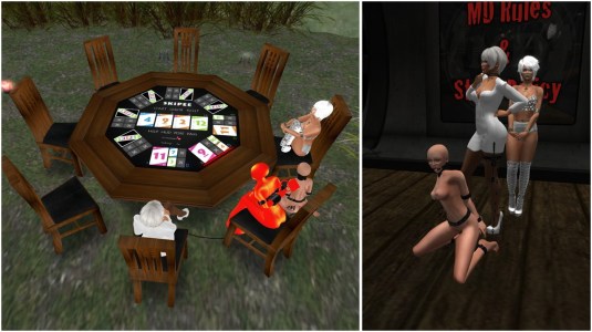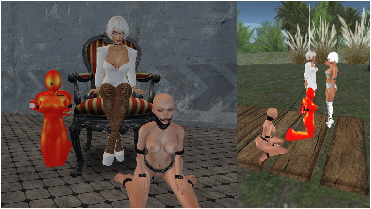 We started September with a mini “Enjoying bondage” night as we took Mii and sklavin to Ropers playground and secured them nicely next to eachother. We ourselves were sitting comfortably on a couch and watched Paige (paige.umino) who danced for us on a dance pole. Paige is another submissive friend of ours who we lost contact with. She developed a lot in our opinion and we enjoyed her presence which is rare due to timezones. In the second picture you can see a young woman standing behind the couch near me. This is Ashley (AshleyAnneLove.resident). She was a stray slave, very willing and watched us quite a while. We took her home and claimed her. We might sell her or use her or simply have fun. We don’t know yet.