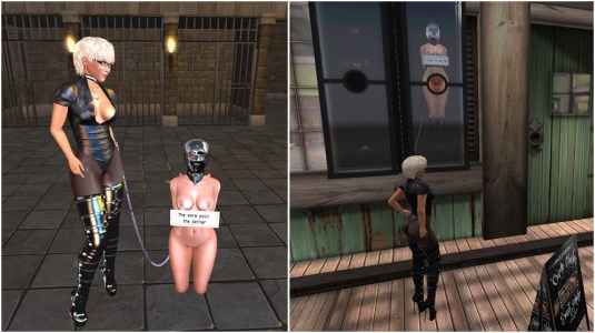 On September 6th we had a rare visit: Coco McGinnis. For us she’s still Dana (dana.drezelan), our former slave who we sold last year. Coco is still having fun exploring the more extreme sides of slavery in SL. She does look ..ehm.. extrem *winks*. I’m sure that just looking a her does scare our slaves.