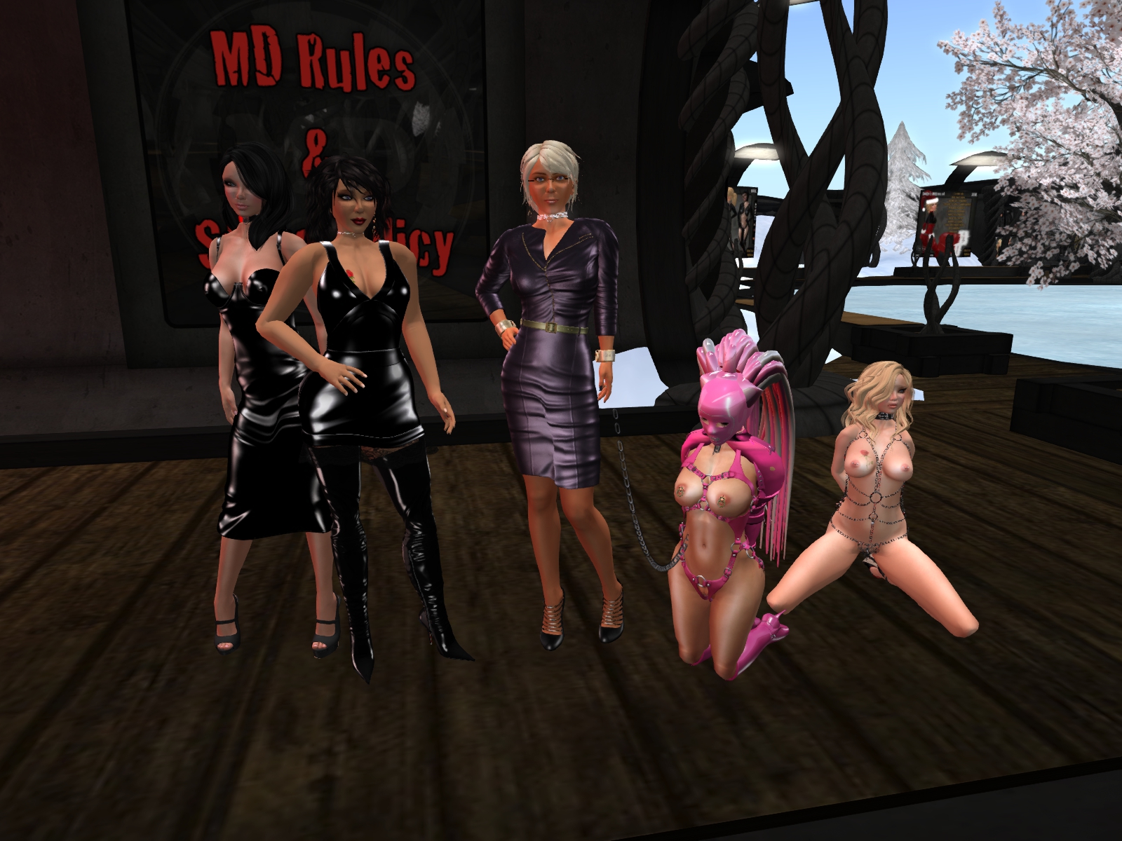 Monday night, October 31st, Halloween itself was quite quiet in SL. As we had our Halloween party I decided not to attend any of the celebrations but to expose gord doll slave Flo and slave maid cecy at Mesmerize Dungeon. Argi joined us just when Jenny came on. I left Argi with the two slaves at MD and went shopping with Jenny. She got a lovely pink latex dress which suits her to perfection. Then we spent an hour at MD just chatting, and watching the scenery. It was a relaxed night and I finished it with taking my property Jenny to our skybox for some time together.