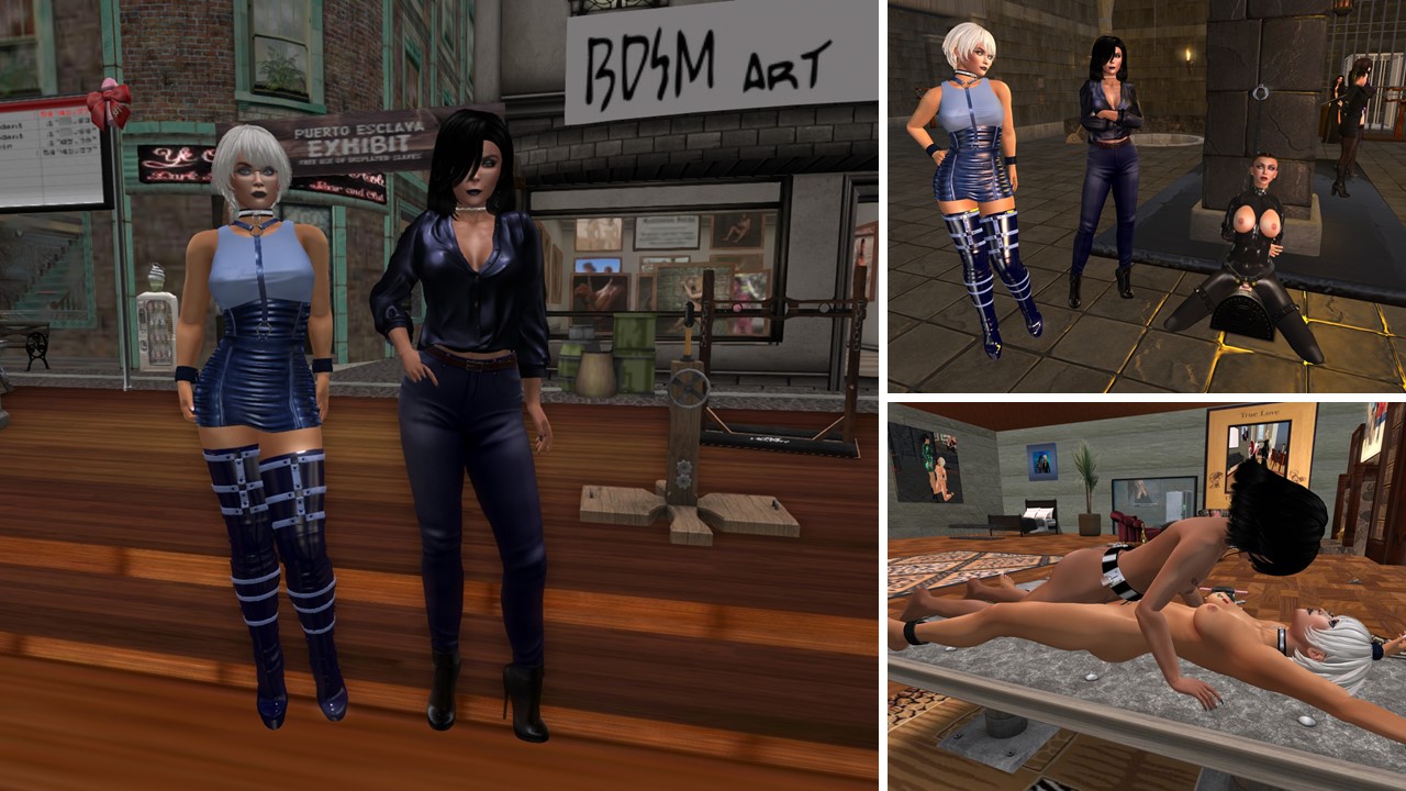 BC (Baroness Capelo)’s twin was once again at Psi’s realm and Mistress and I couldn’t refrain from taking a picture of her and us. We tried to liven up Psi’s realm and chatted in main not only with BC’s Twin but also with Psi herself. Our Kitty loves tieing up or locking up Psi and other guests at Psi’s ream quite often and to add some spice Mistress offered a reward to Psi or anybody else for delivering our Kitty nicely hogtied at home. We had fun!
